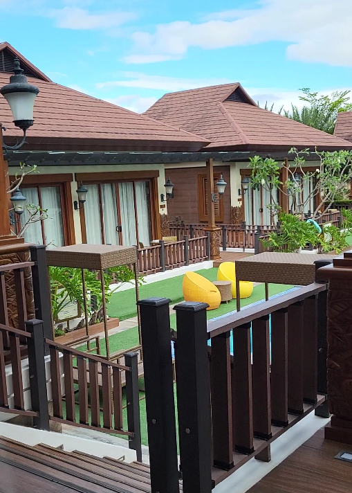 The overall aesthetic of the resort truly lives up to its name, Highland Bali. I’ve never been to Bali, Indonesia (but have always wanted to visit!), but I did recognize the architecture throughout the place as Bali-inspired – layered roofs, intricate wood carvings, earthy tones and landscaped gardens. There were also pops of bright colors for a tropical feel.